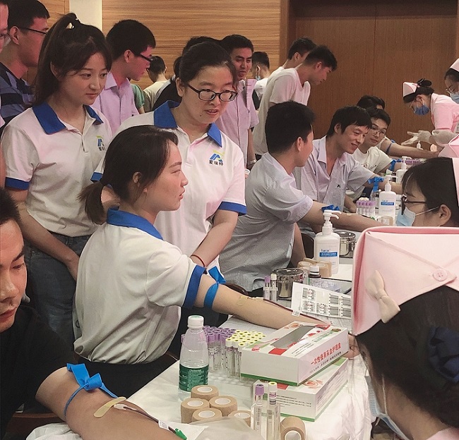 In the blood donation hall, the employees of arete who came to donate blood lined up to wait for the results of blood collection, waiting for blood donation. Each of them has a smile on his face, supports voluntary blood donation with practical actions, and offers his love for the life and health of the masses.