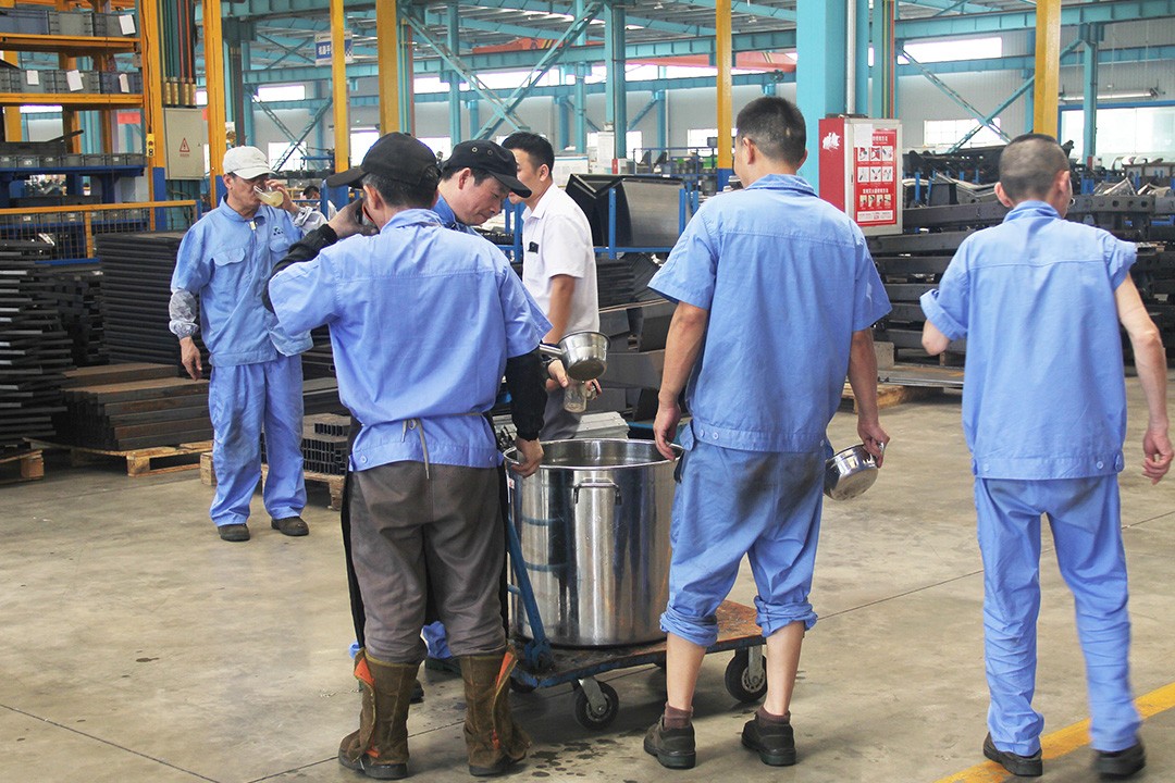 為表達(dá)對(duì)員工的關(guān)心與愛(ài)護(hù),公司即日起開(kāi)展本年度的“夏送清涼”活動(dòng),為炎炎夏日依舊堅(jiān)守在工作崗位上的一線工人們送去了清涼解暑的綠豆湯。