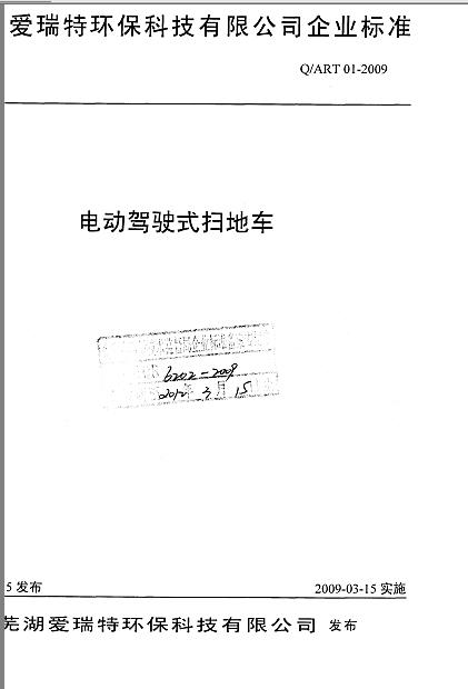 電動駕駛式掃地車、電動駕駛式洗地機是愛瑞特公司自行研制開發的產品,暢銷全國各地并遠銷海外,但國內沒有相關標準,企業生產、檢驗、銷售缺乏法定依據。為積極推進技術標準戰略,促進企業搶占質量制高點,為產品質量提供技術支持,愛瑞特公司制定了電動駕駛式掃地車、電動駕駛式洗地機企業標準。