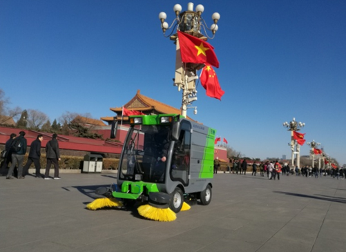 幾百年來,為維護天安門形象,管理者們都將保潔工作作為重中之重。天安門的保潔工作經歷了兩個階段:純人工保潔模式,人工保潔加少量燃油環衛車模式。近日,愛瑞特產品亮相天安門,助力北京環衛集團使天安門保潔工作跨入新階段—純電動環衛車保潔模式。