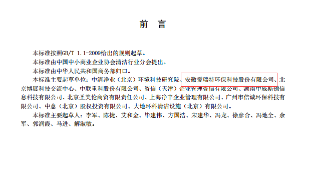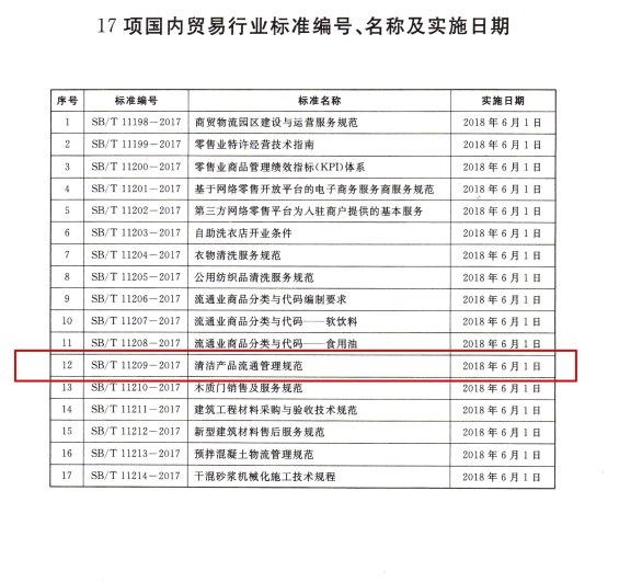 2018年6月1日,由愛瑞特主持起草的商務部行業(yè)標準《清潔產(chǎn)品流通管理規(guī)范》正式實施。